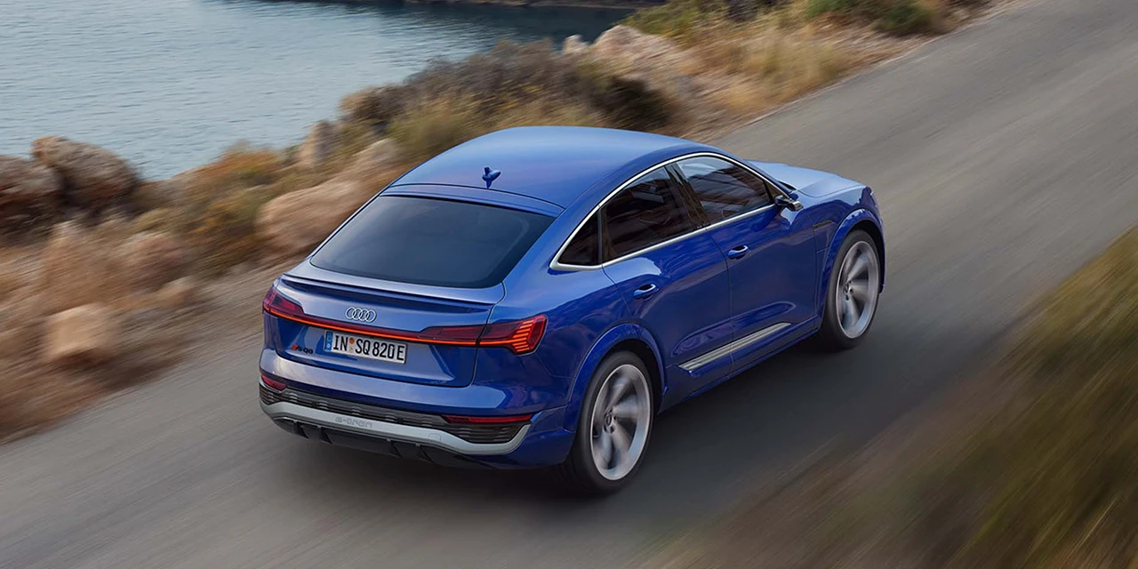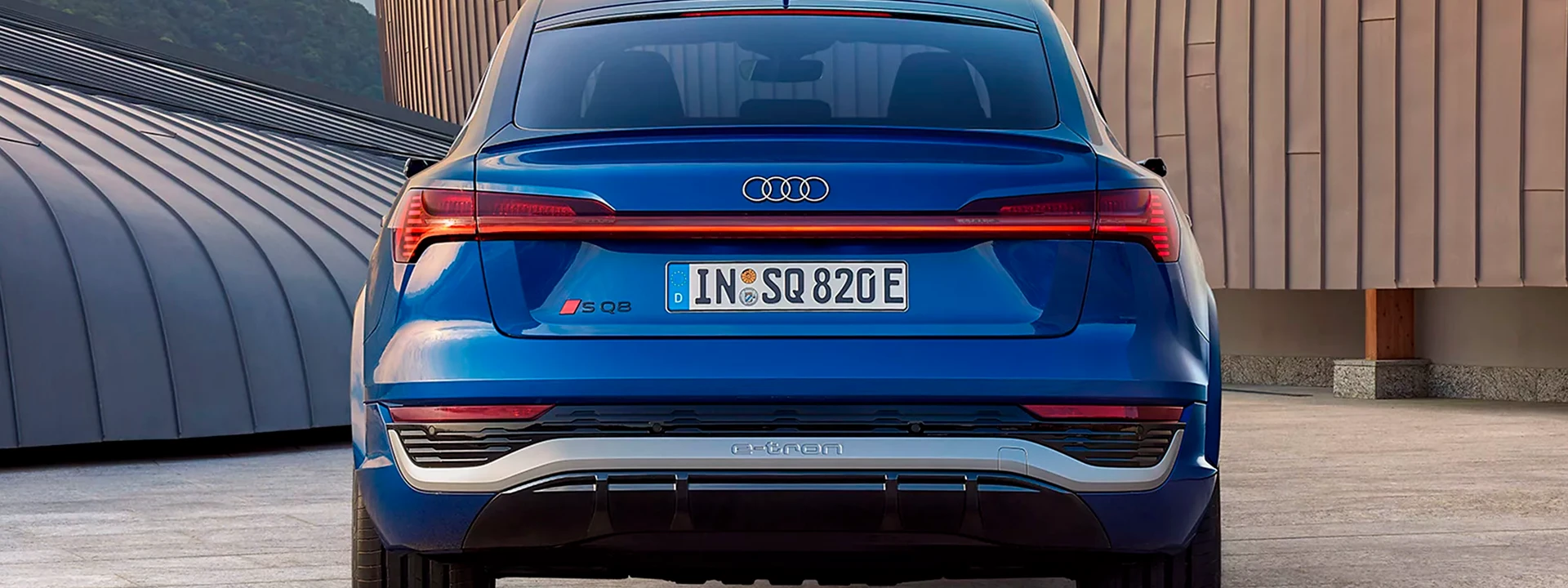 A linha do teto levemente inclinada confere ao modelo uma aparência de coupé e reflete o dinamismo progressivo do veículo no exterior. Os anéis Audi com novo design e outros detalhes elegantes são acentuados em particular pela pintura metálica Azul Ultra.