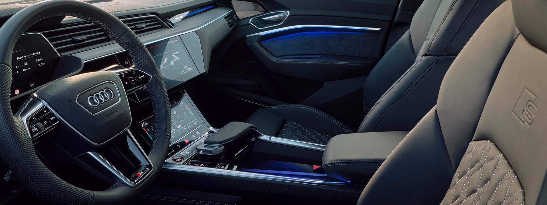 Ao entrar, você será recebido por um ambiente esportivo de alta qualidade, realçado pelos bancos esportivos dianteiros com emblema S. Desfrute a generosa sensação de espaço e excelente conforto do Audi SQ8 Sportback e-tron.